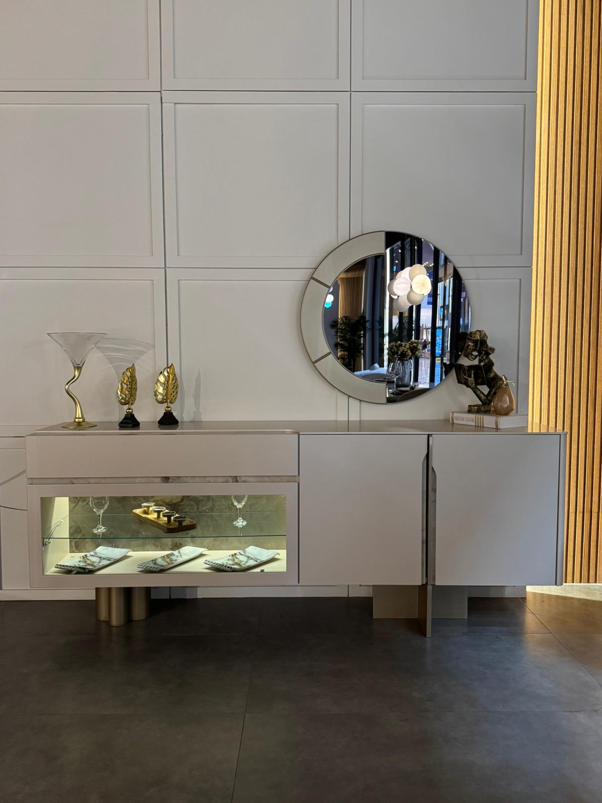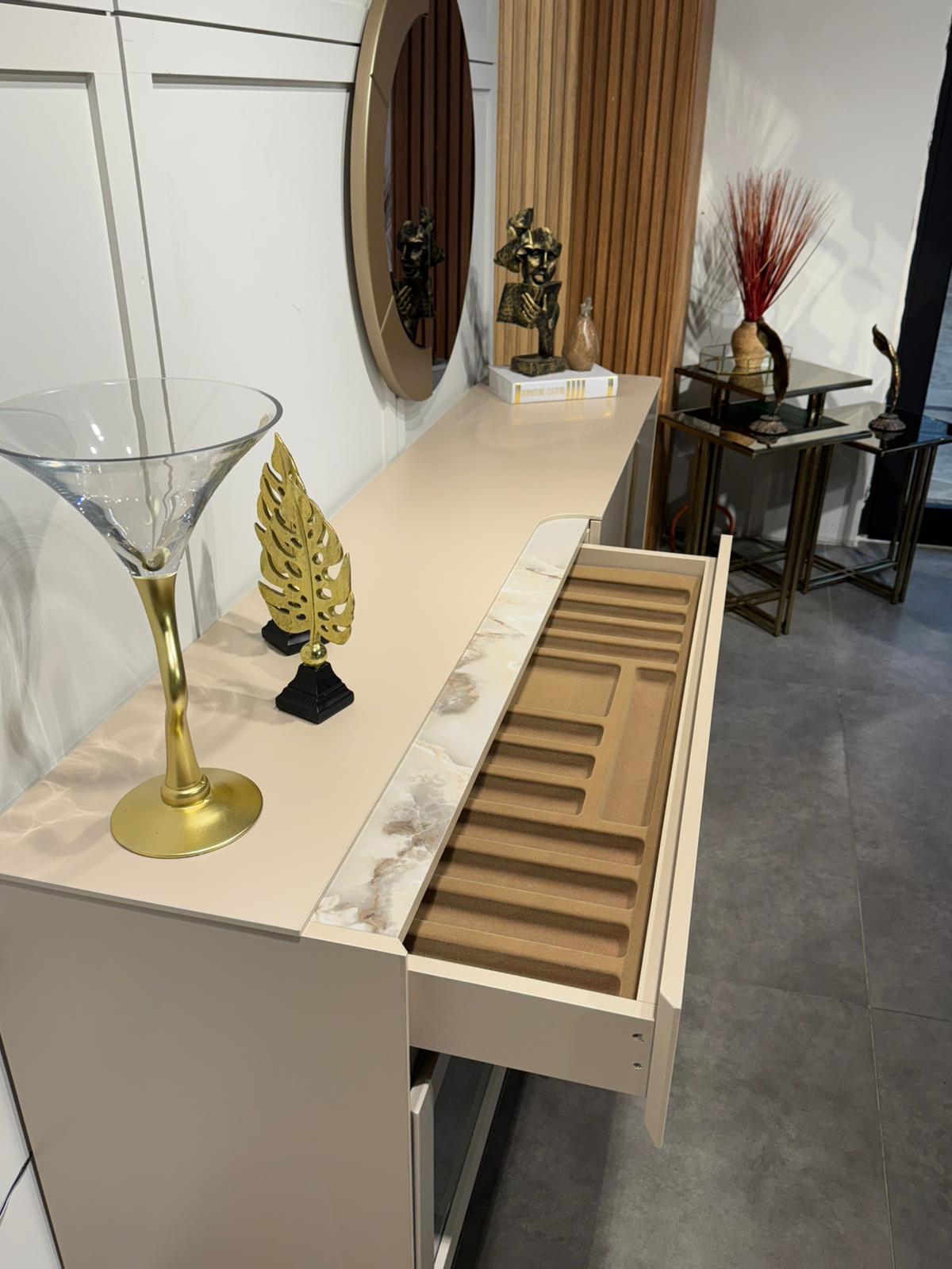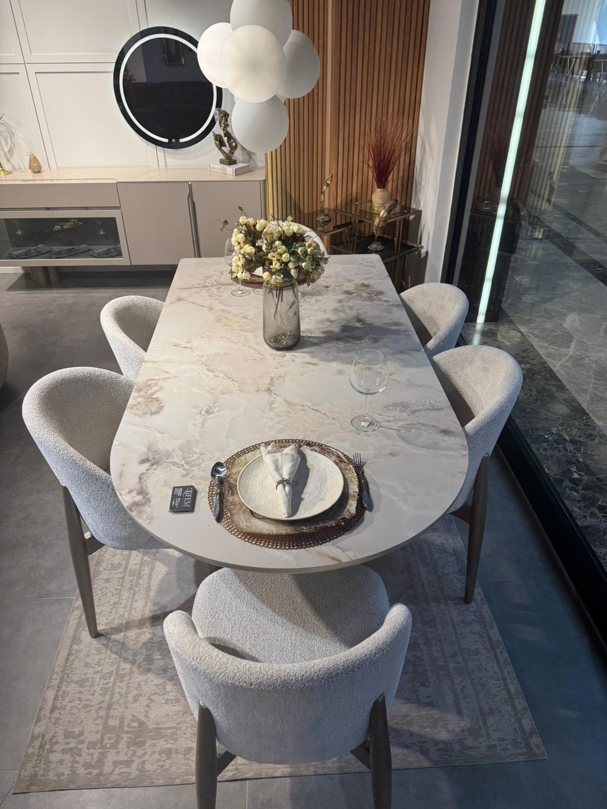 Takım İçeriğiYemek Odası Takımı, 1 adet masa, 6 adet sandalye, 1 adet konsol ve aynasından oluşmaktadır. İnegöl Mobilya Kalitesiyle Üretilmiştir.