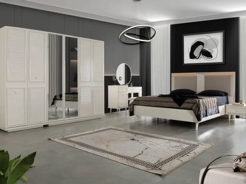 | Takım İçeriği | Düğün Paketimiz: Yatak Odası Takımı (6 Kapaklı Dolap + Başlık + Baza + Şifonyer ve aynası + 2 Komodin) Yemek Odası Takımı (Masa + 6 Sandalye + Konsol + Aksesuar) Koltuk Takımı(3+3+1)’ndan oluşmaktadır. Ürün detaylarına ilgili ürünün sayfasından inceleyebilirsiniz. |