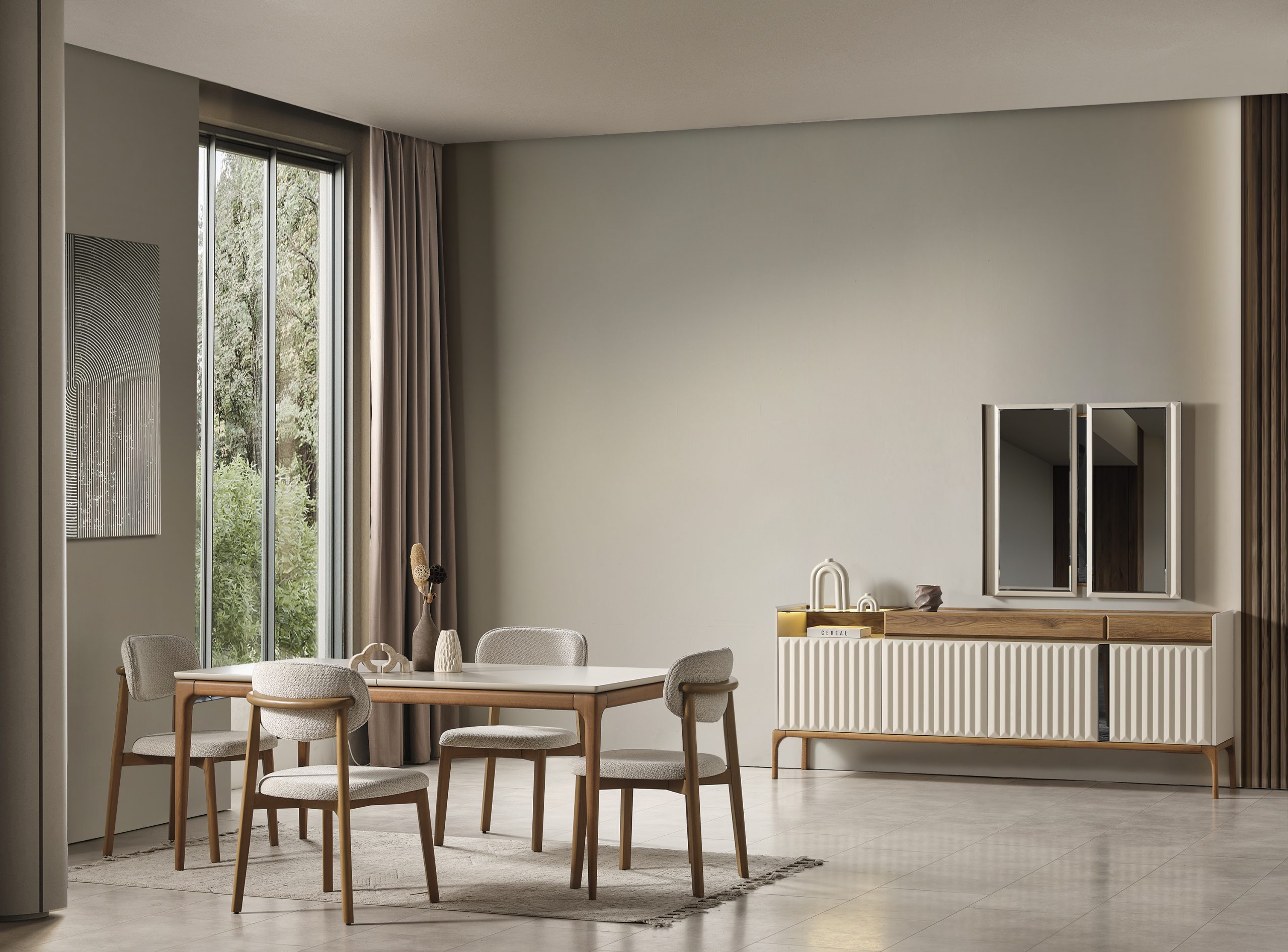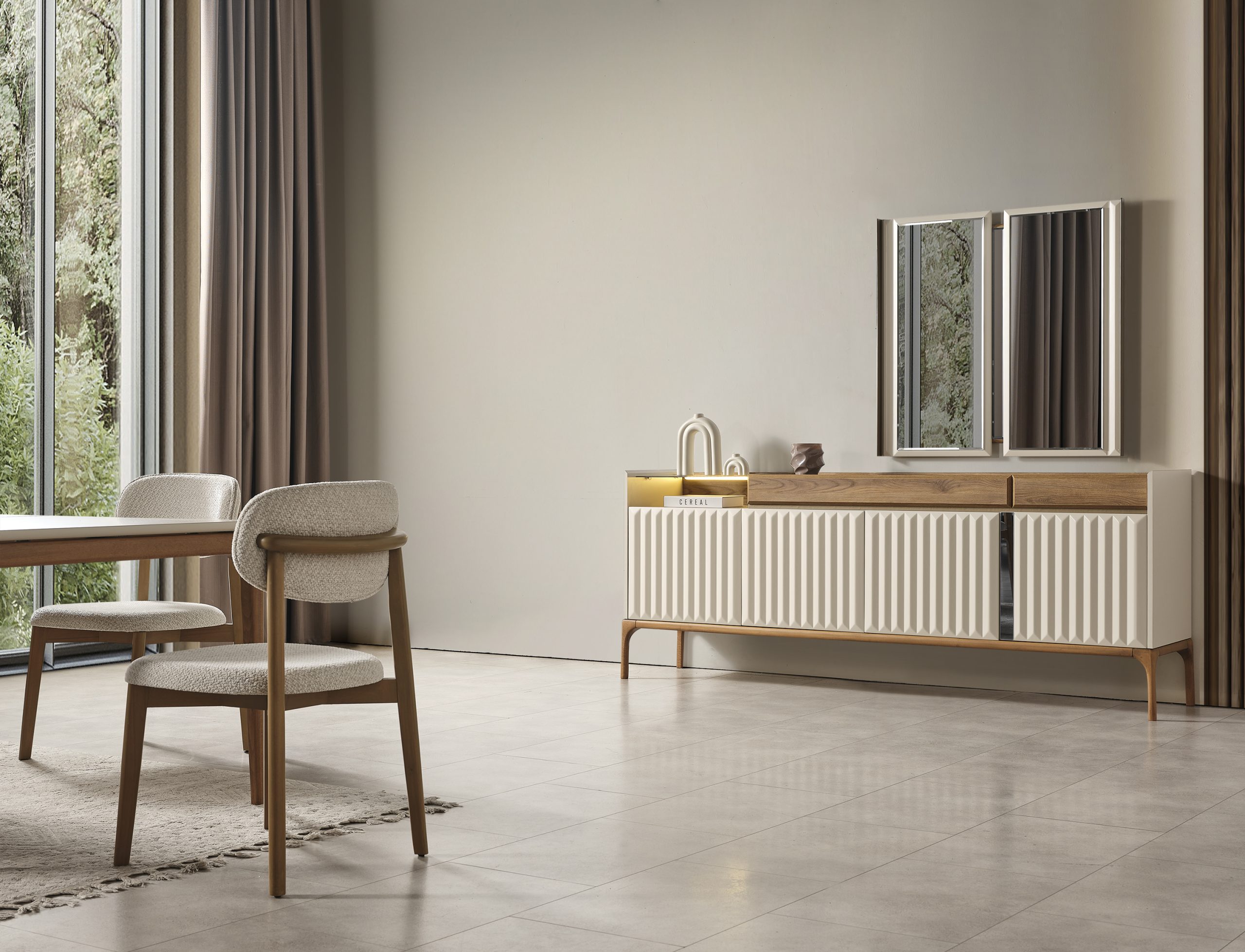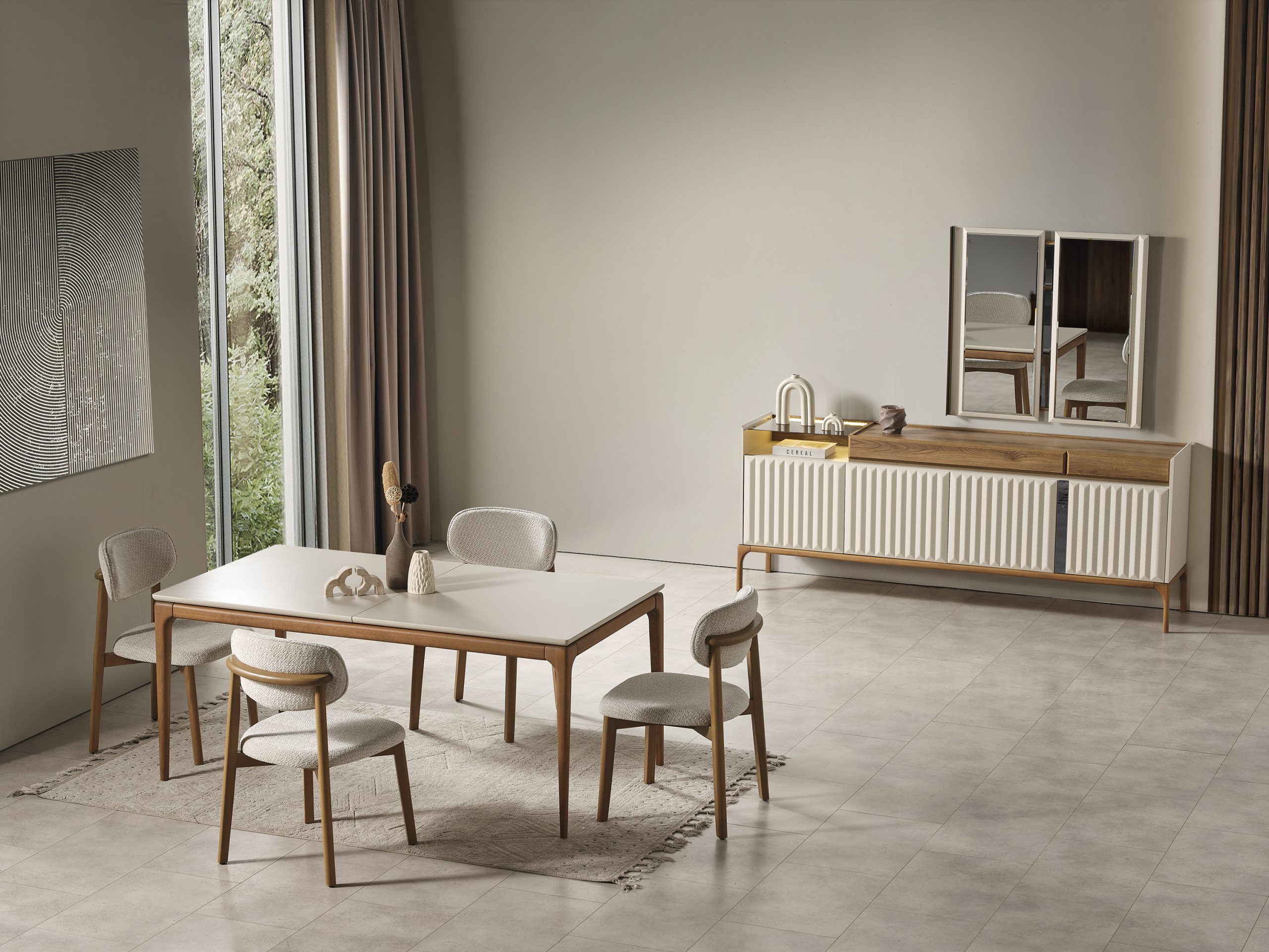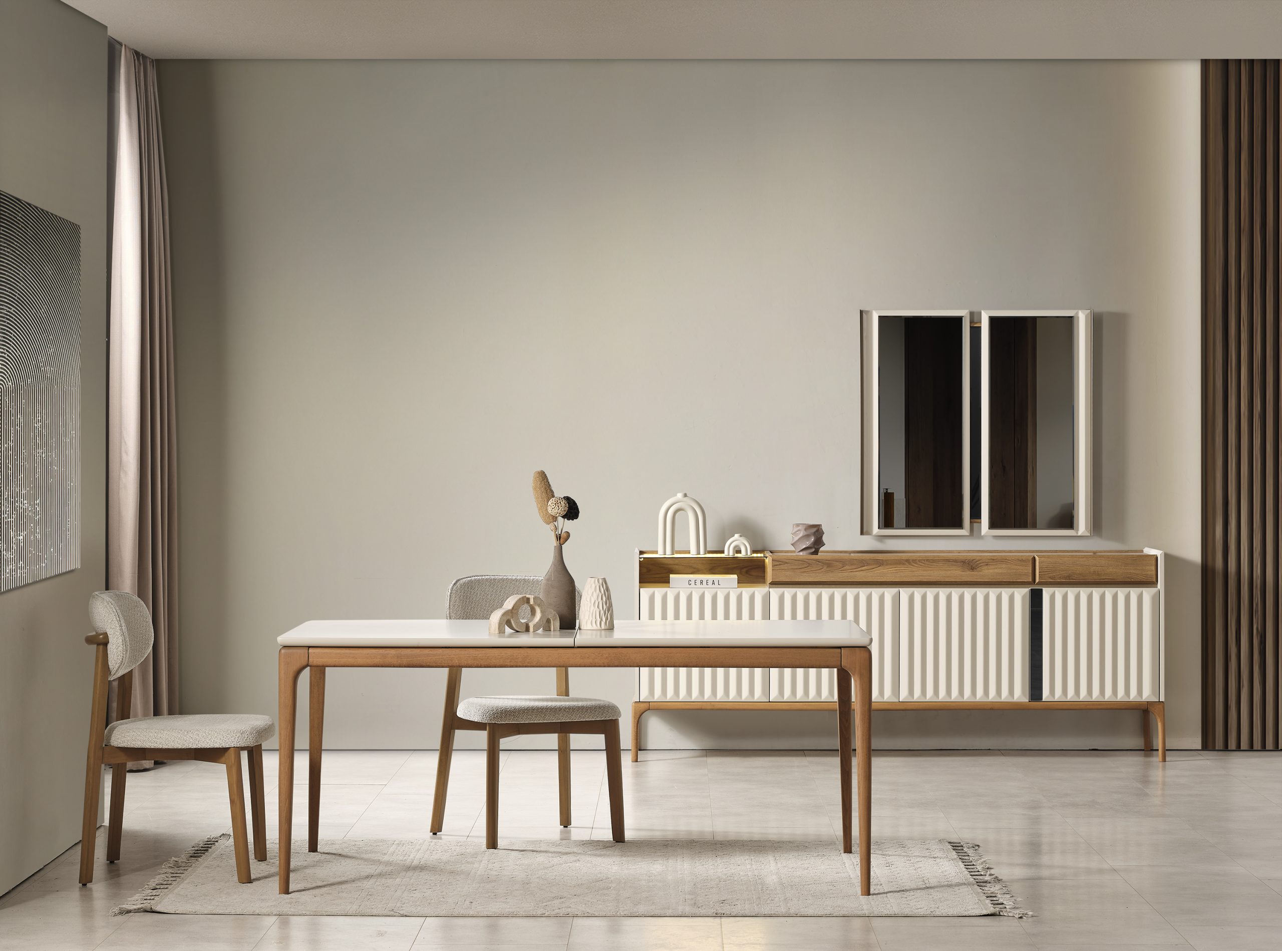 Takım İçeriği | Yemek Odası Takımı, 1 adet masa, 6 adet sandalye, 1 adet konsol ve aynasından oluşmaktadır. İnegöl Mobilya Kalitesiyle Üretilmiştir. |