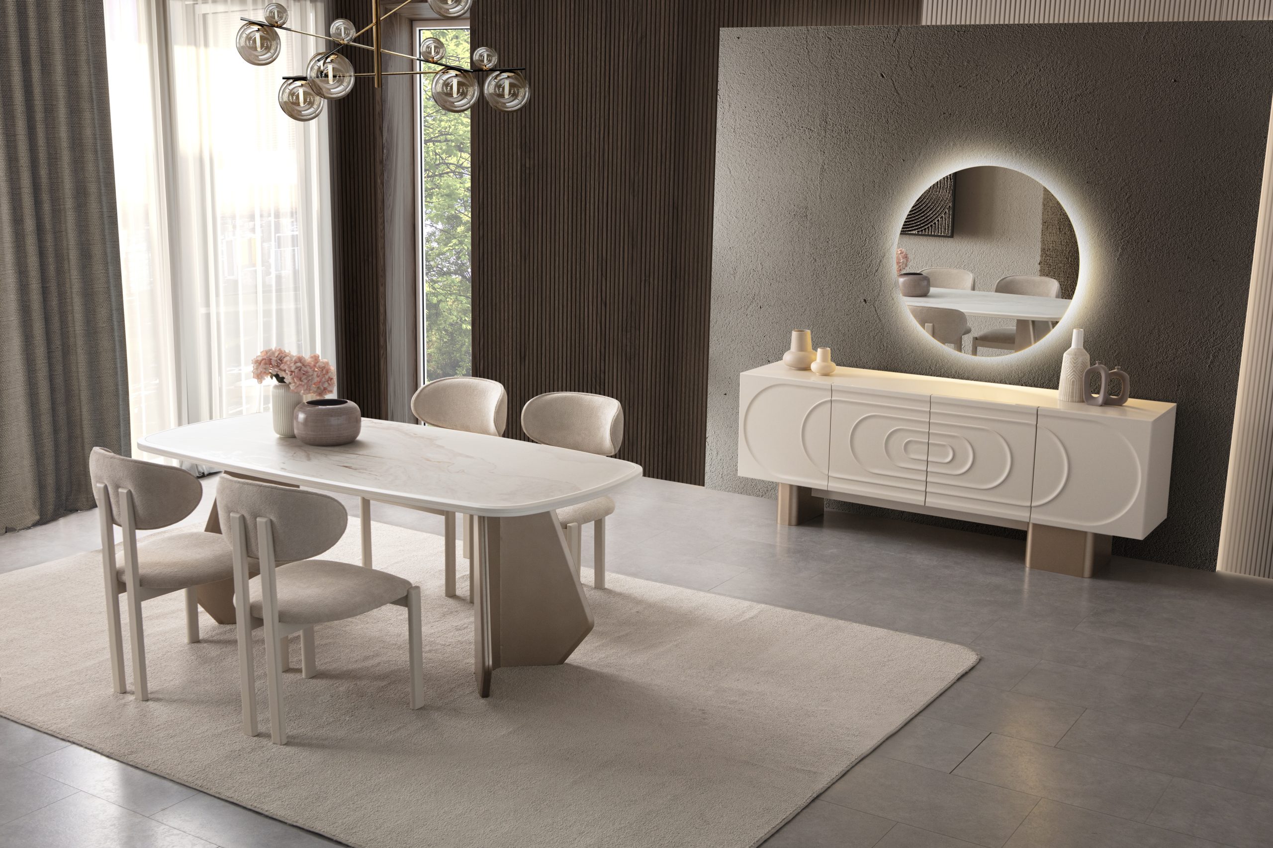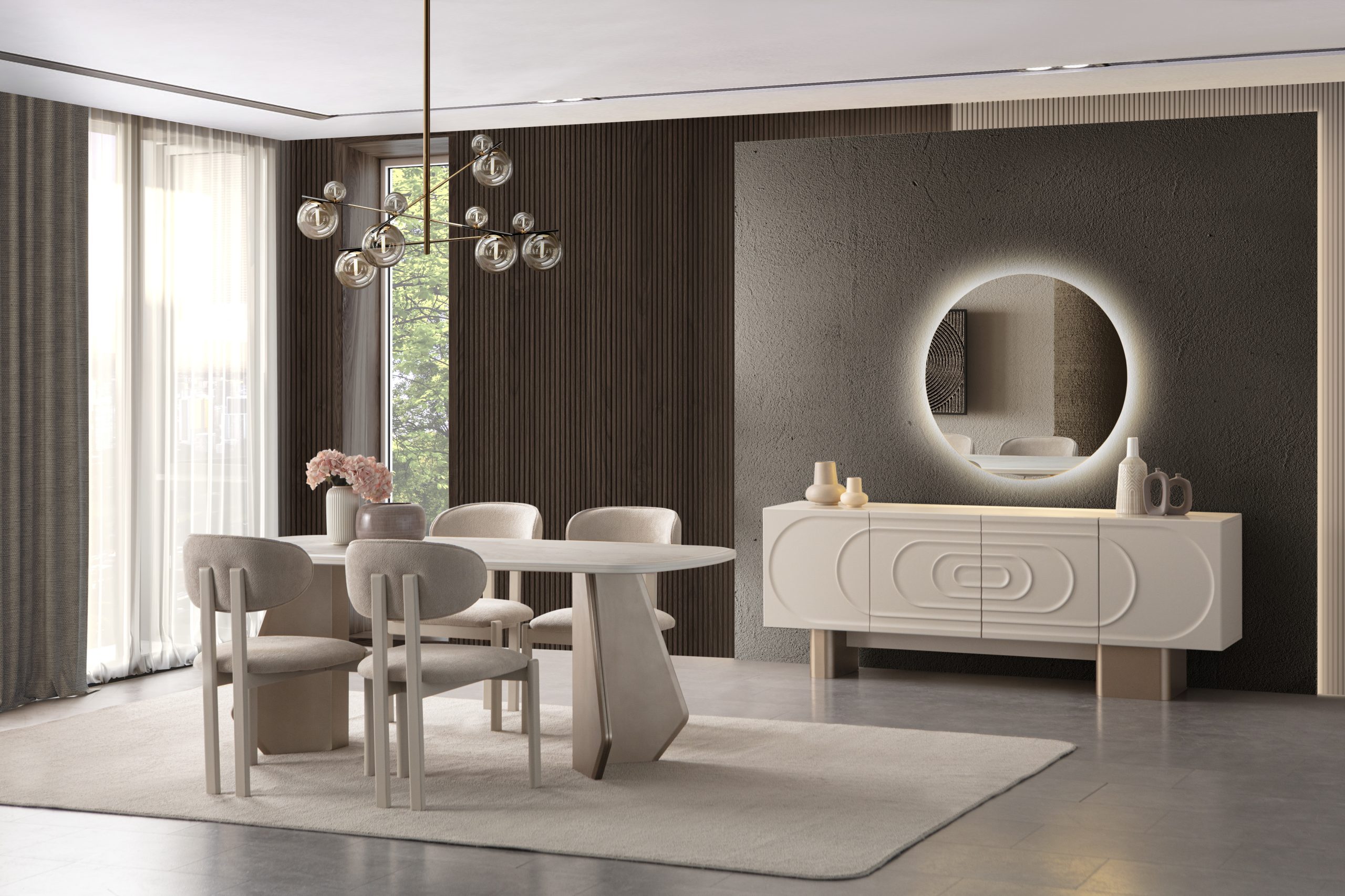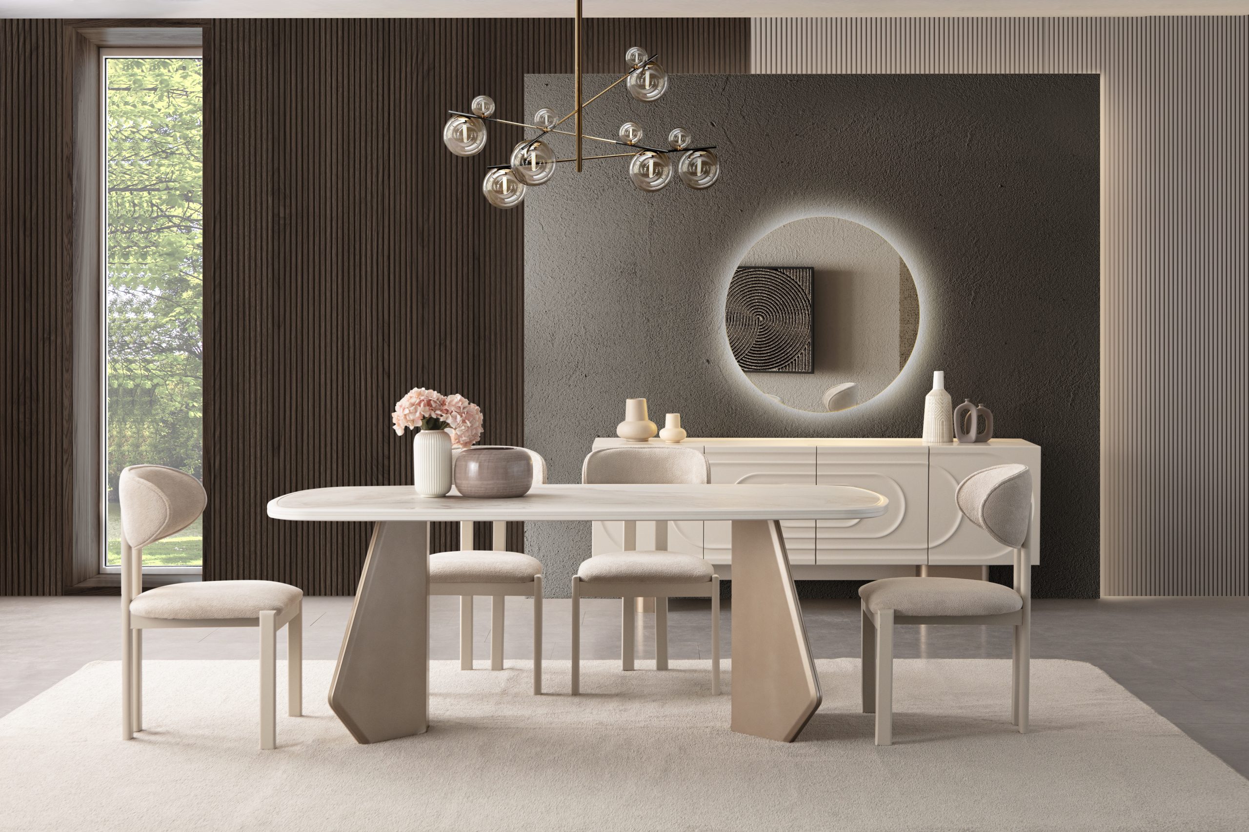 | Takım İçeriği | Yemek Odası Takımı, 1 adet masa, 6 adet sandalye, 1 adet konsol ve aynasından oluşmaktadır. İnegöl Mobilya Kalitesiyle Üretilmiştir. |