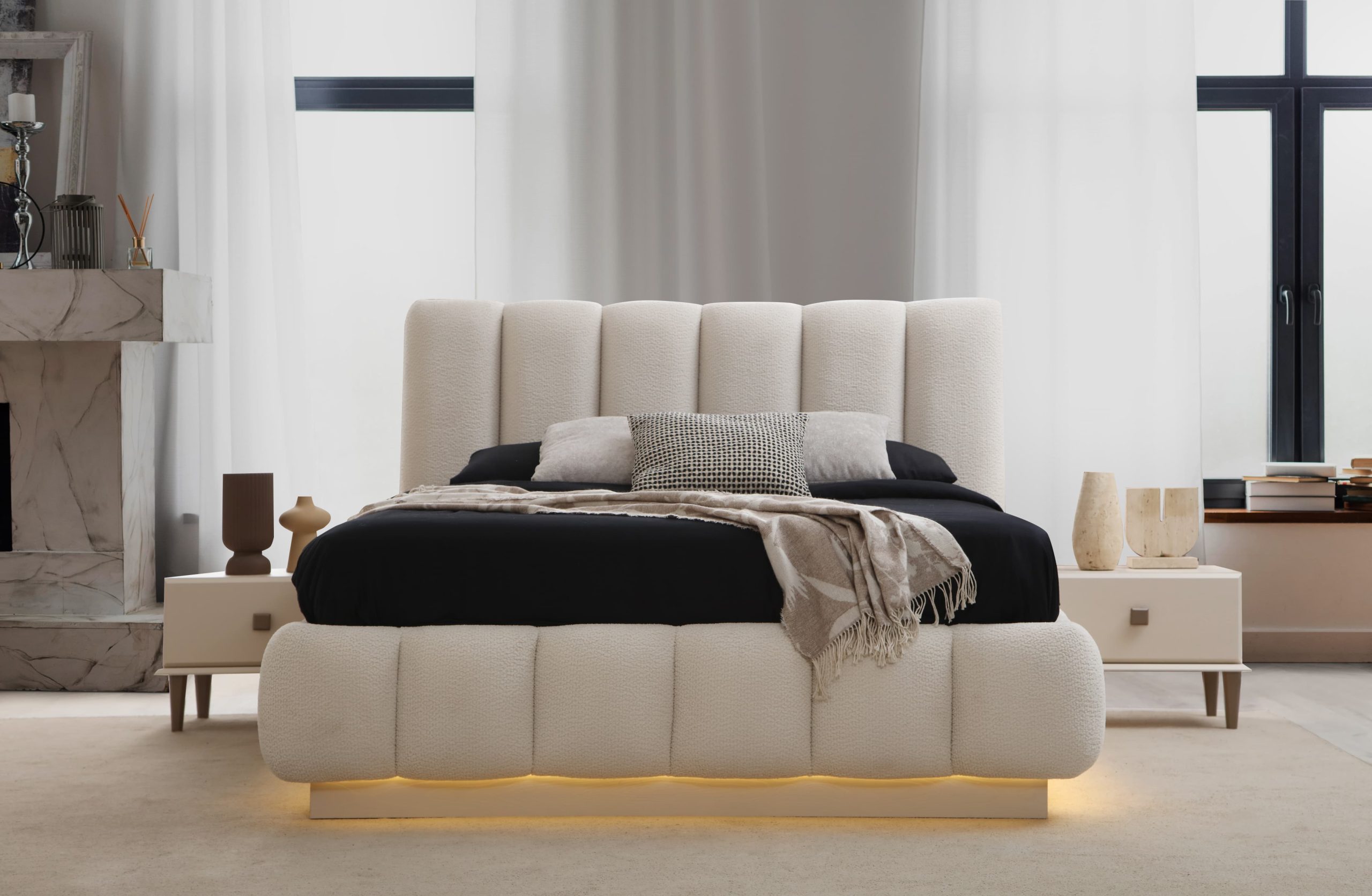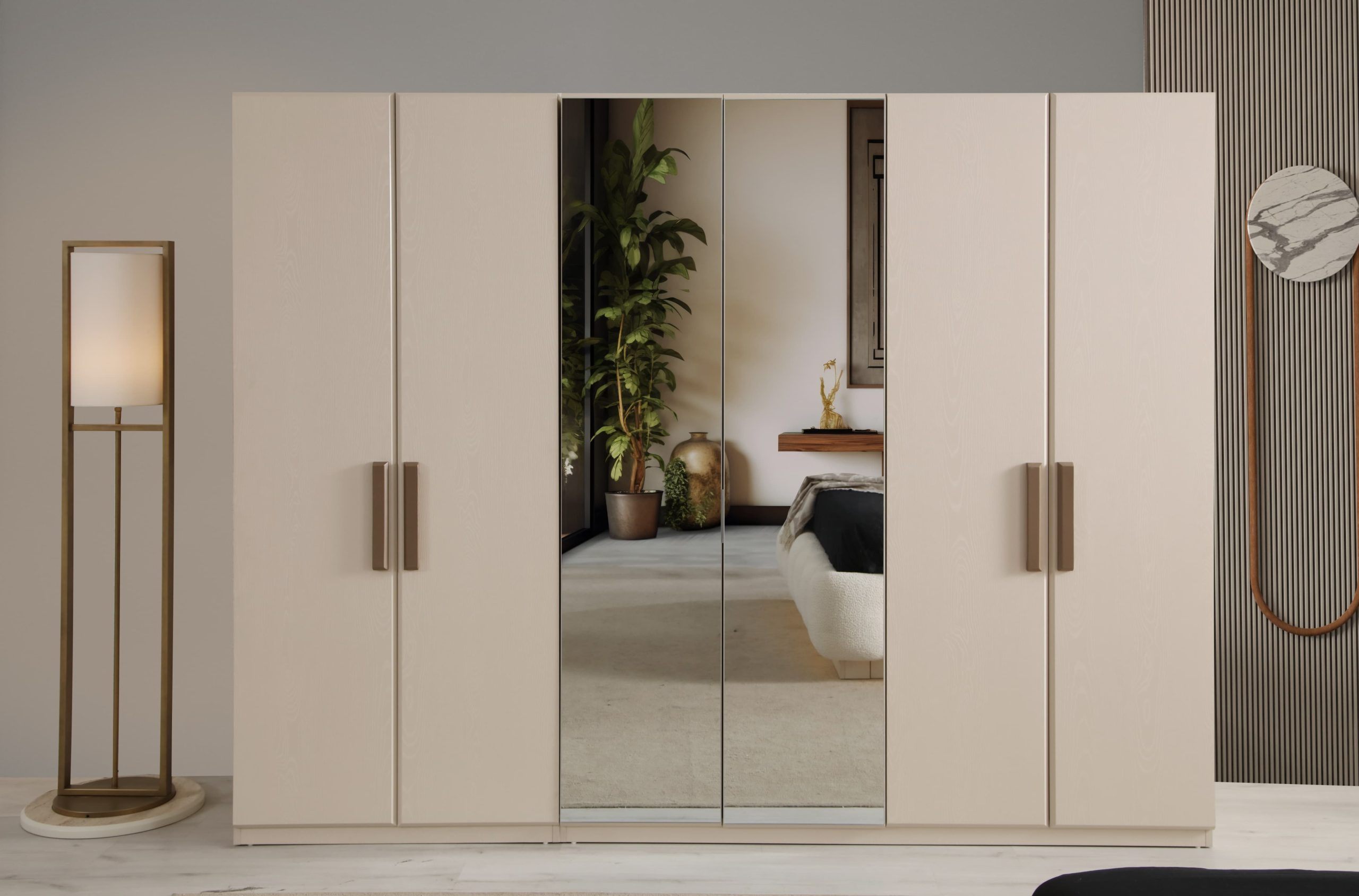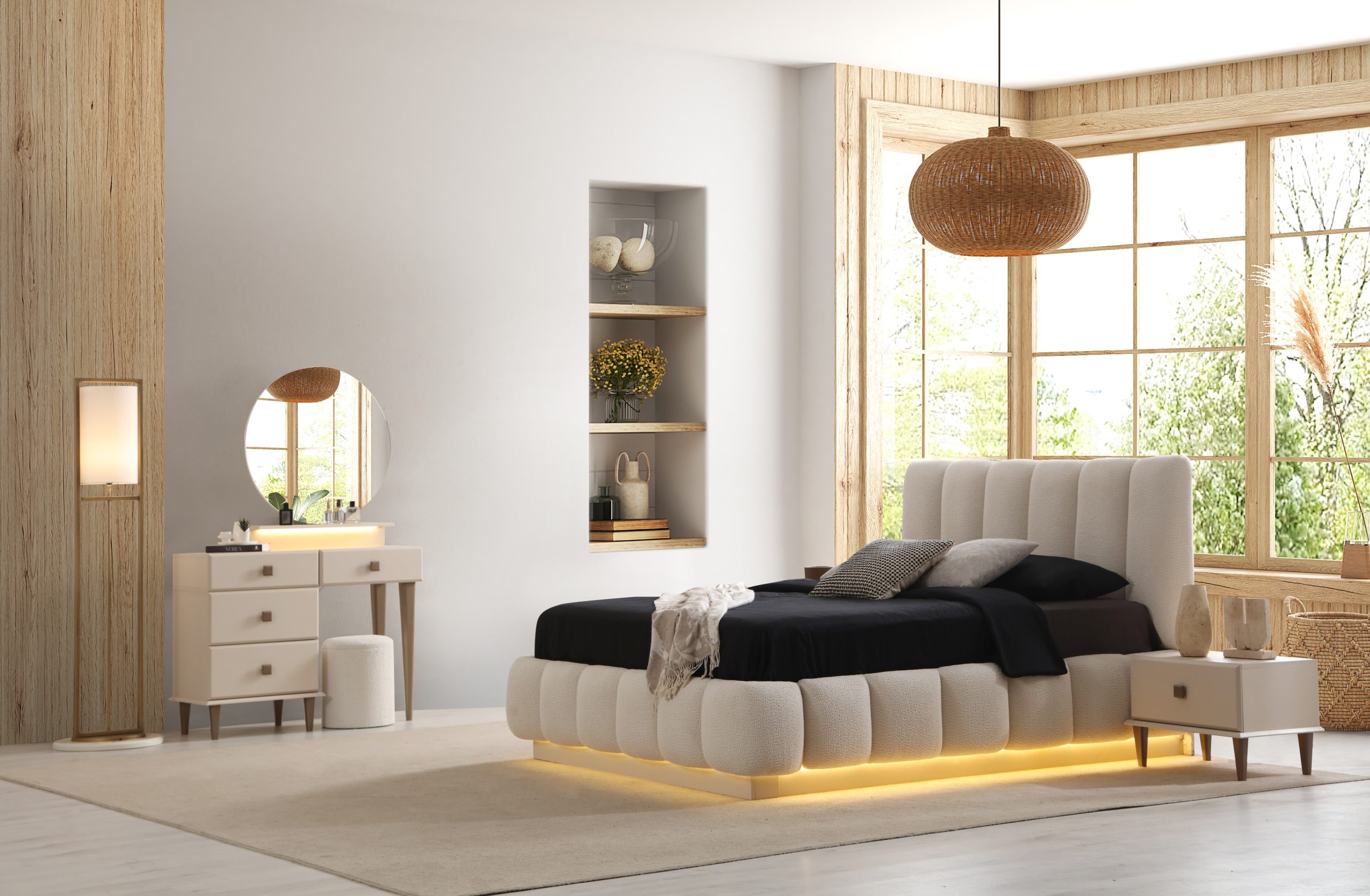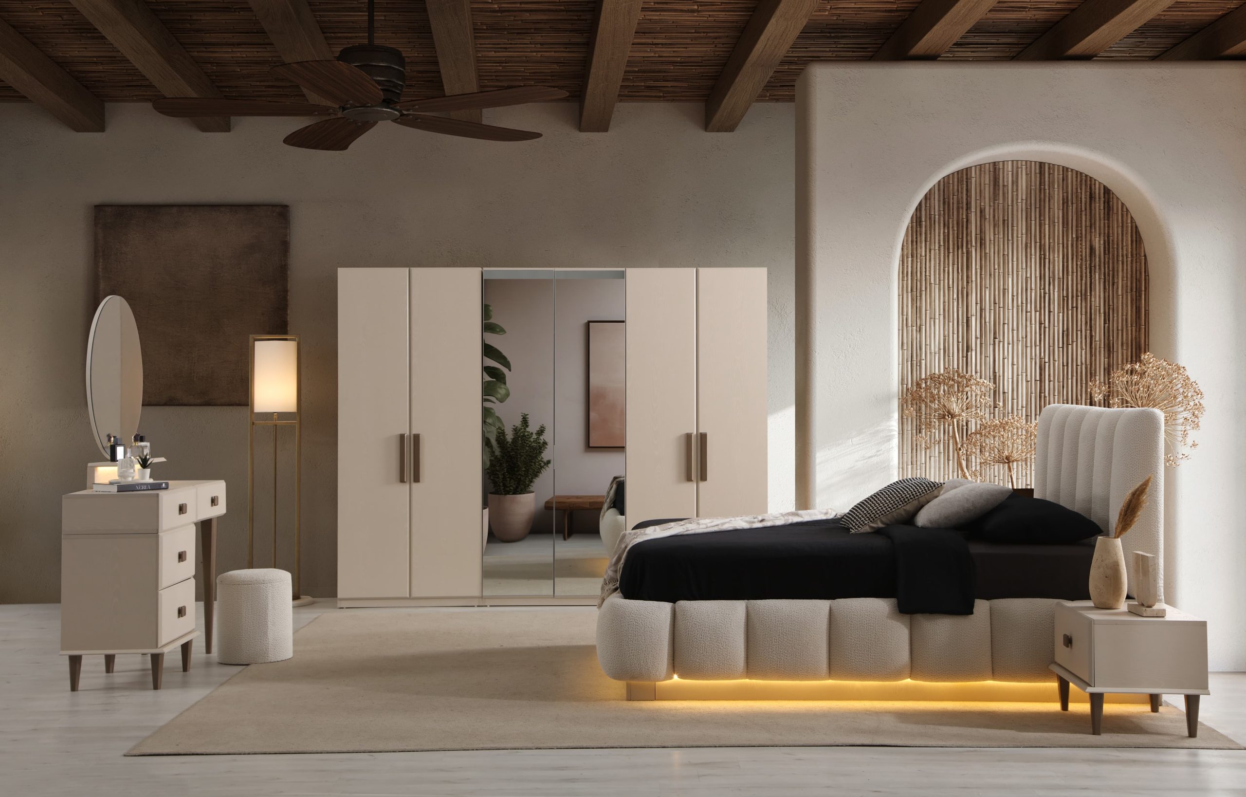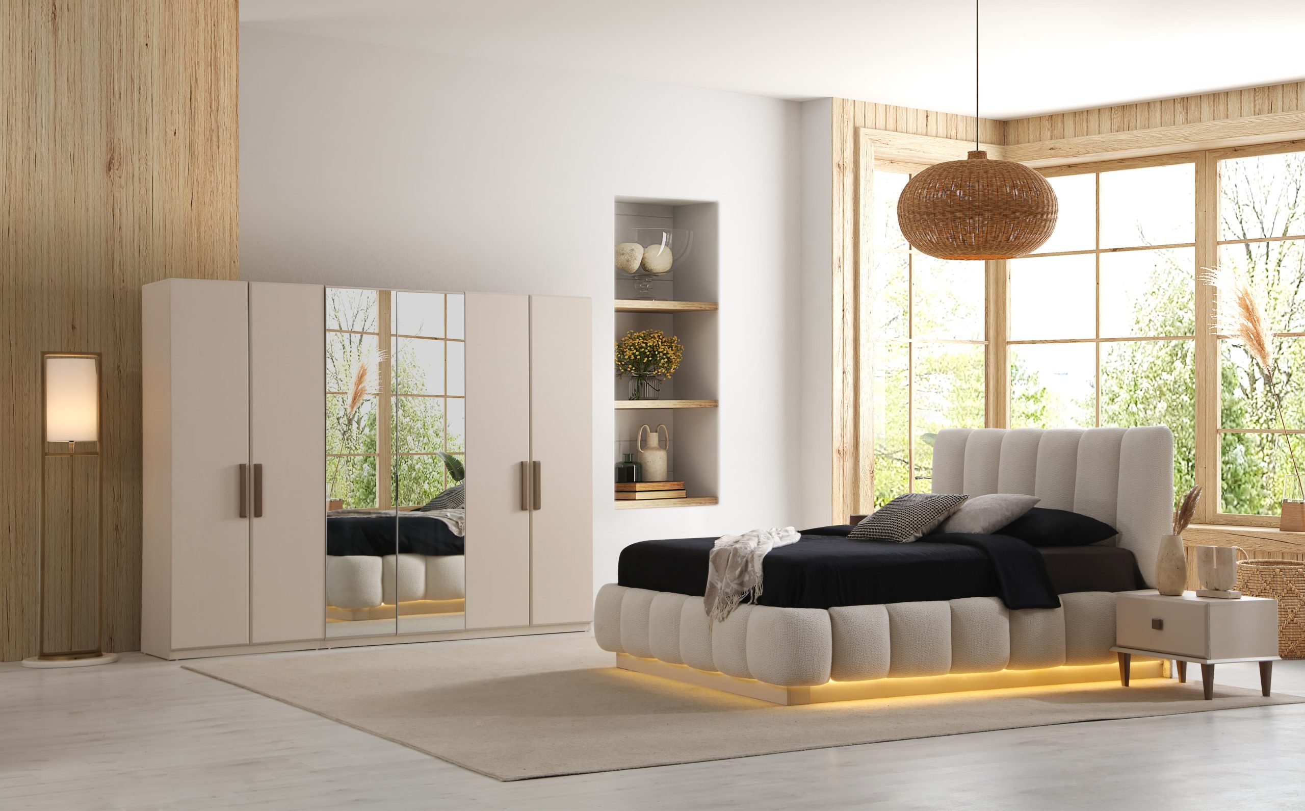 Yatak Odası Takımı (6 Kapaklı Dolap + Başlık + Baza + Şifonyer ve aynası + 2 Komodin)