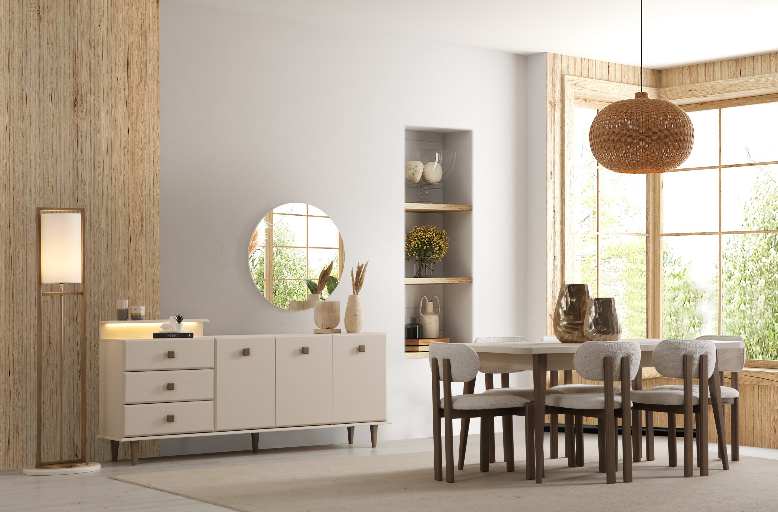 Yemek Odası Takımı (Masa + 6 Sandalye + Konsol + Aksesuar)