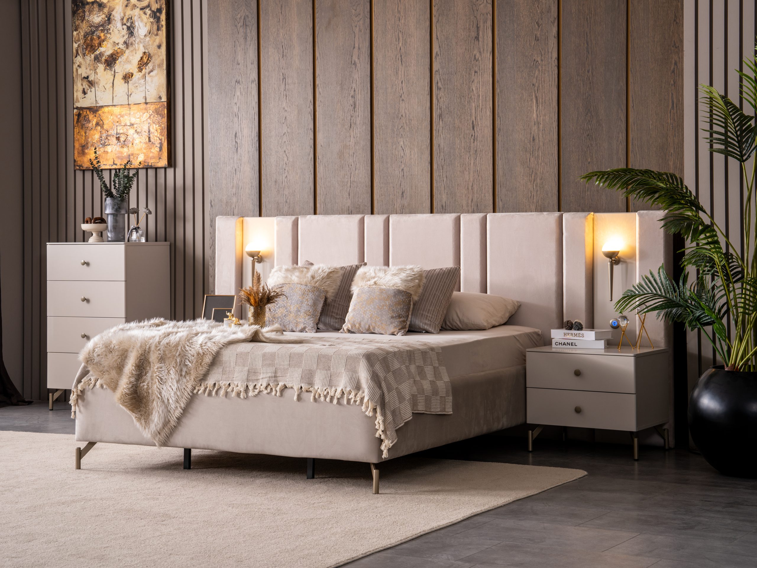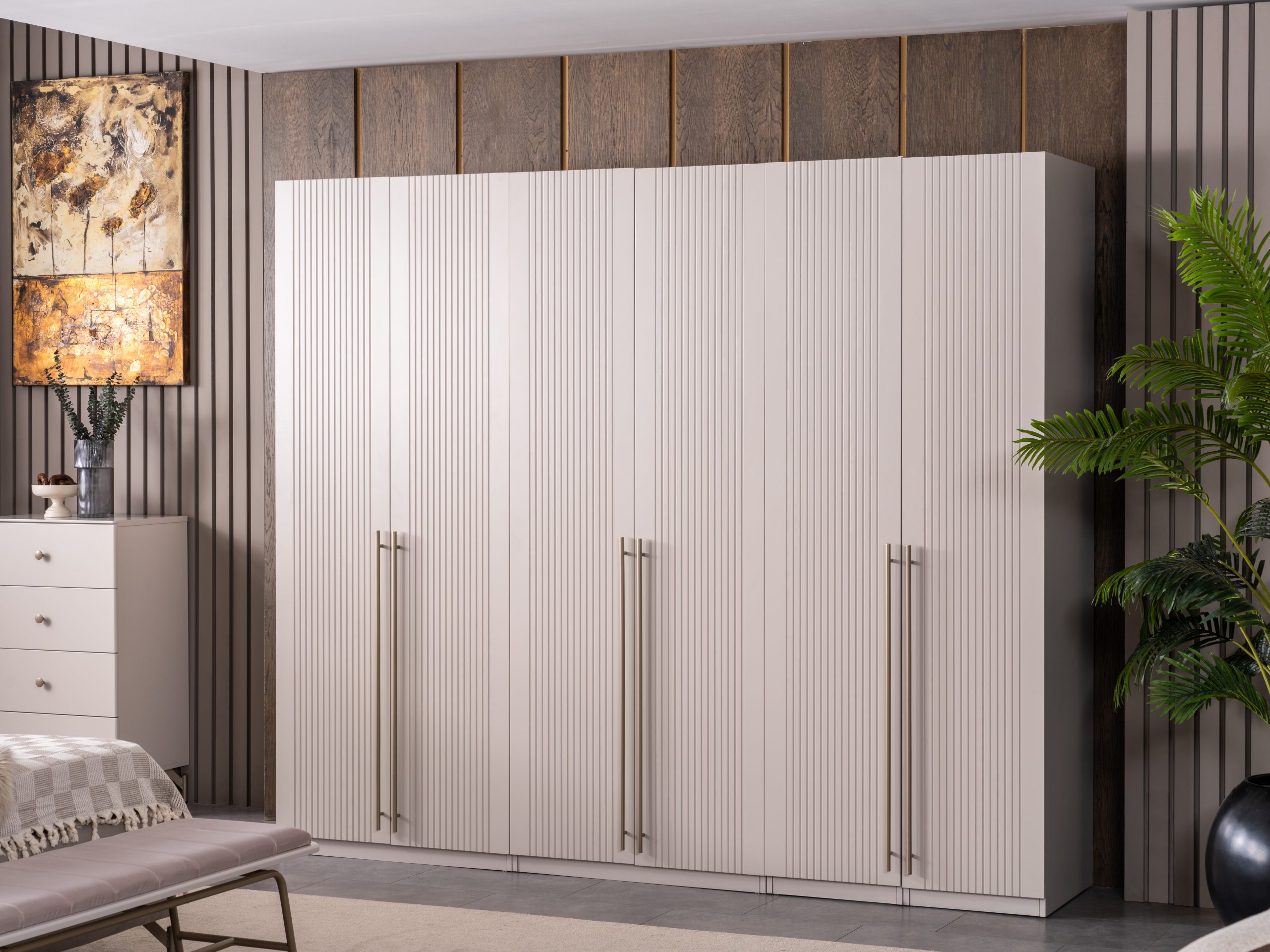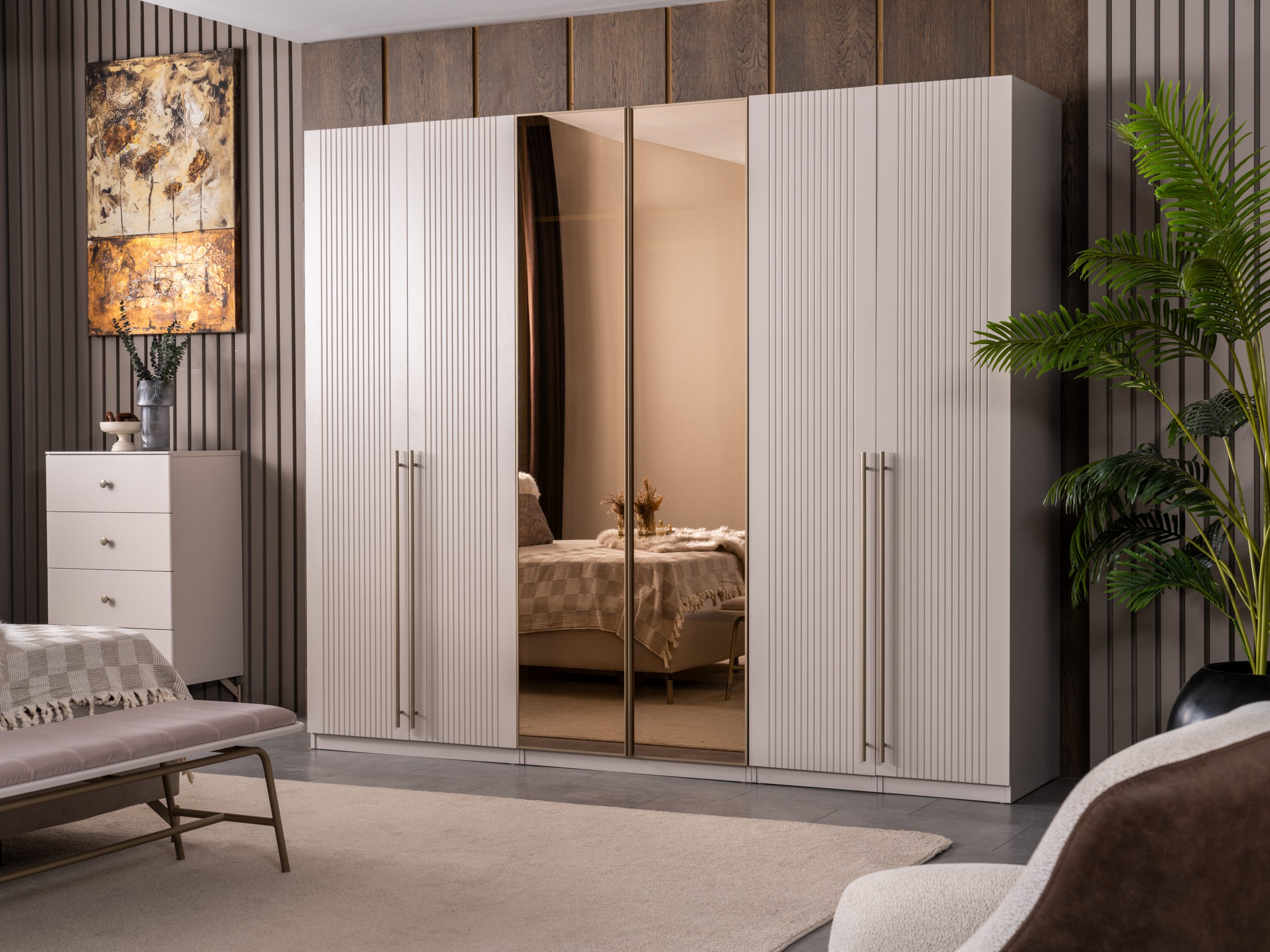 Yatak Odası Takımı (6 Kapaklı Dolap + Başlık + Baza + Şifonyer ve aynası + 2 Komodin)