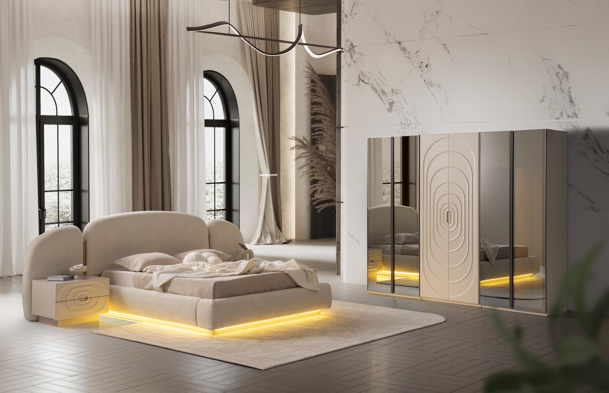 | Takim Içerigi | Yatak Odası Takımımız , 1 adet gardırop, 1 adet karyola ve başlığı, 2 adet komodin, 1 adet şifonyerden oluşmaktadır. BENCH VE ÇAMAŞIRLIK DAHİL DEĞİLDİR. |