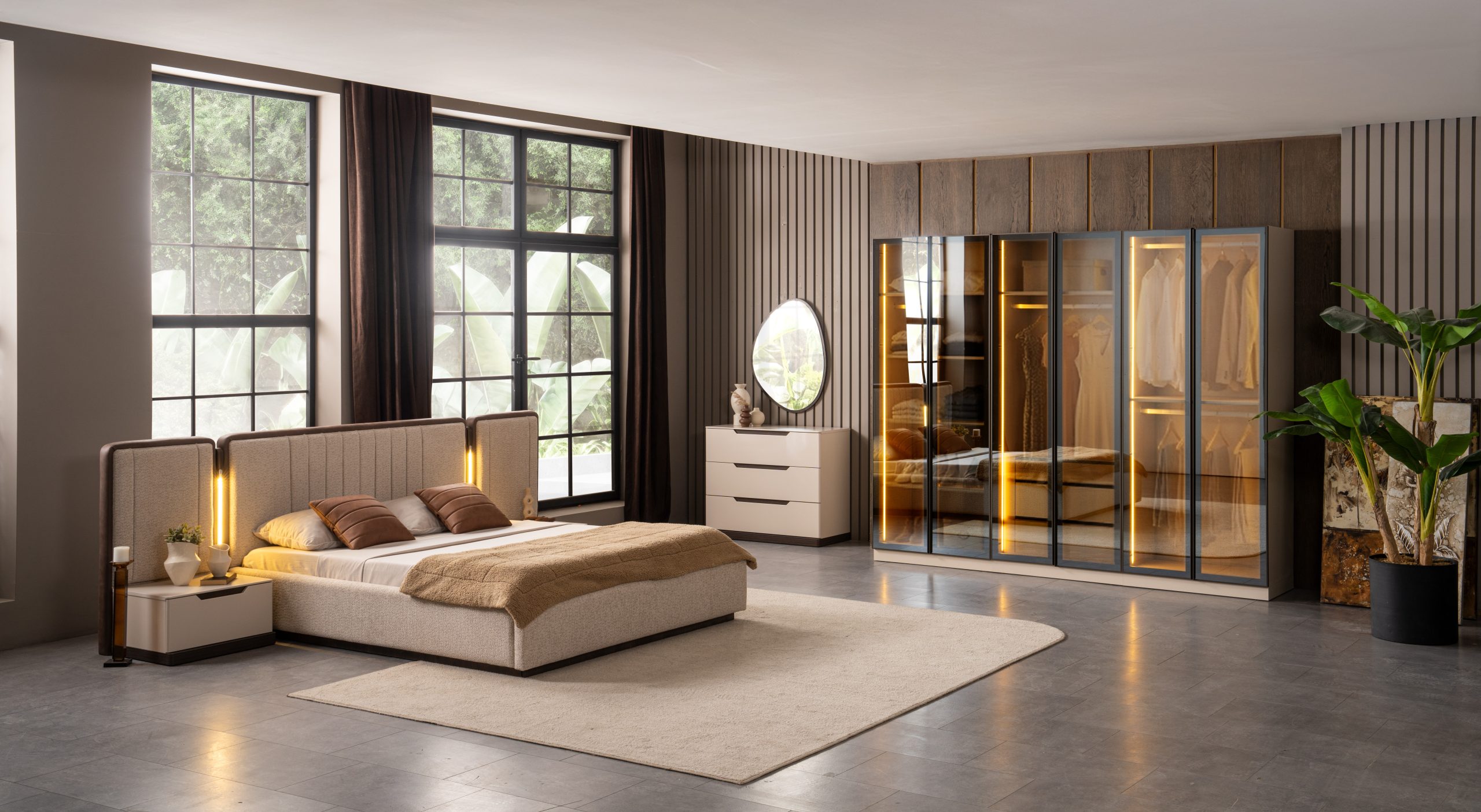 | Takim Içerigi | Yatak Odası Takımımız , 1 adet gardırop, 1 adet karyola ve başlığı, 2 adet komodin, 1 adet şifonyerden oluşmaktadır. |