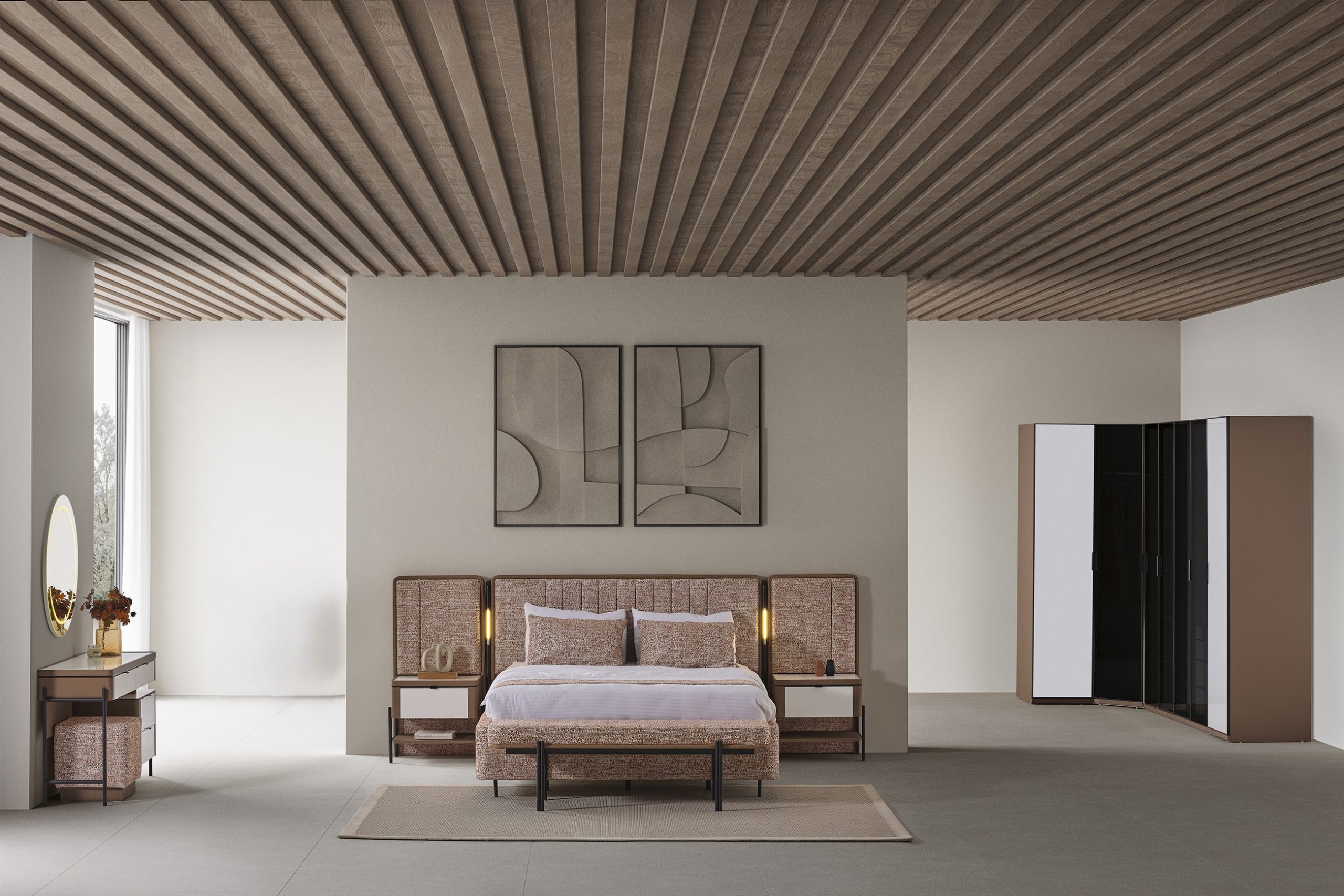 MOKA KİREMİT Köşe Dolaplı Yatak Odası (7 KAPAK)